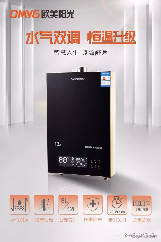 2、12L到8L智能变升、水气流量监测、双感温、进出水温度显示、五段定时关机;
